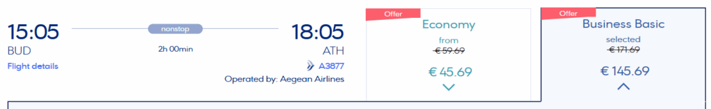 Например, благодаря скидке, вот какой выходит цена за перелёт из Будапешта в Афины. На первый взгляд, ни о каких 50% речи нет, но вдруг вам повезет больше…