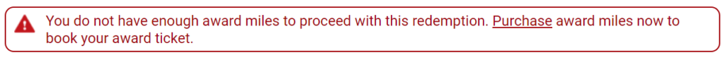 Вот какое сообщение вы получите, если нажмете в календаре на доступную дату, не имея при этом на счету необходимых миль.