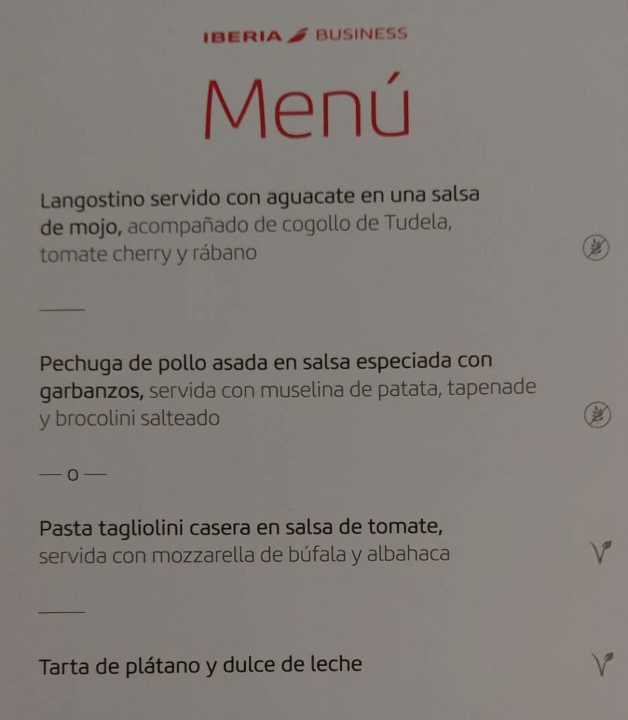 Iberia не позволяет предзаказывать горячие блюда онлайн, но пассажиры могут заранее ознакомиться с меню. Чтобы заранее готовиться к тому, какое блюдо им не достанется 😉