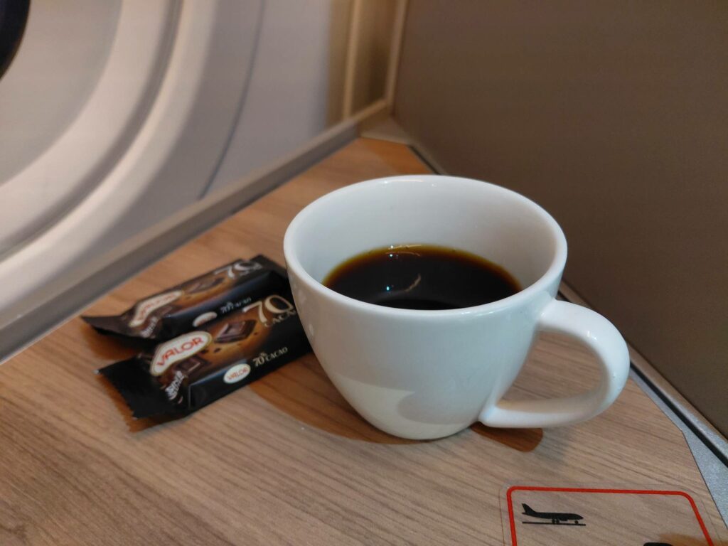 После ужина, пассажирам проактивно предлагали чай/кофе и шоколадки. Замечу: горький шоколад, а не молочное бессилие Lufthansa 😉