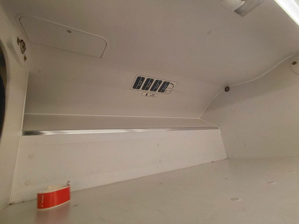 Слева от меня, возле иллюминатора, был треугольный шкафчик-углубление, в котором можно разместить телефон или иные мелкие ценности.