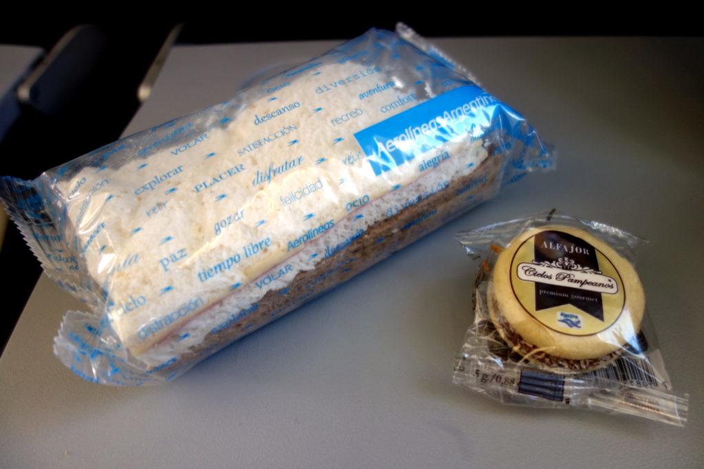 На международном рейсе мне досталась симпатичная коробка с сэндвичем и традиционной аргентинской сладостью, alfajor. Вкусно!