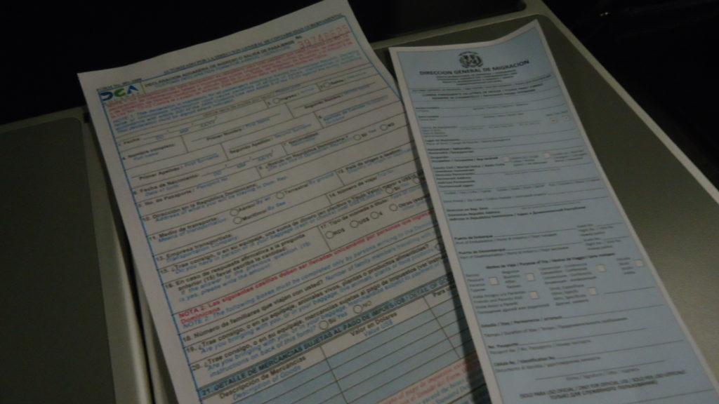 Перед тем как погасить свет, пассажирам раздали иммиграционные карты для въезда в Доминикану.