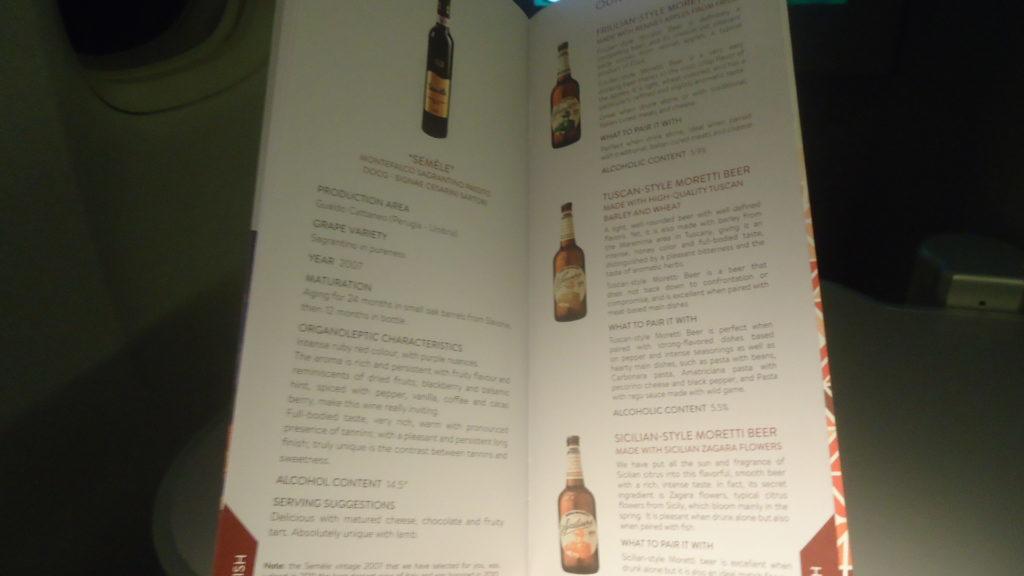 И винная карта. Alitalia предлагает каждый месяц вина из определенных двух областей Италии. Мне кажется, это отличный способ продвигать продукты своей страны. В этот раз вина были из Лацио и Апулии.