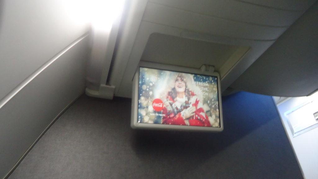На общем экране на протяжении всего полета были включены американские телешоу, перемежающиеся рекламой. Они невольно привлекают внимание и отвлекают от мыслей о глубоком; я считаю, что либо персональный IFE, либо уж вообще никакого.