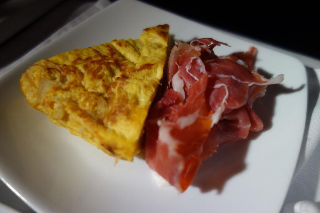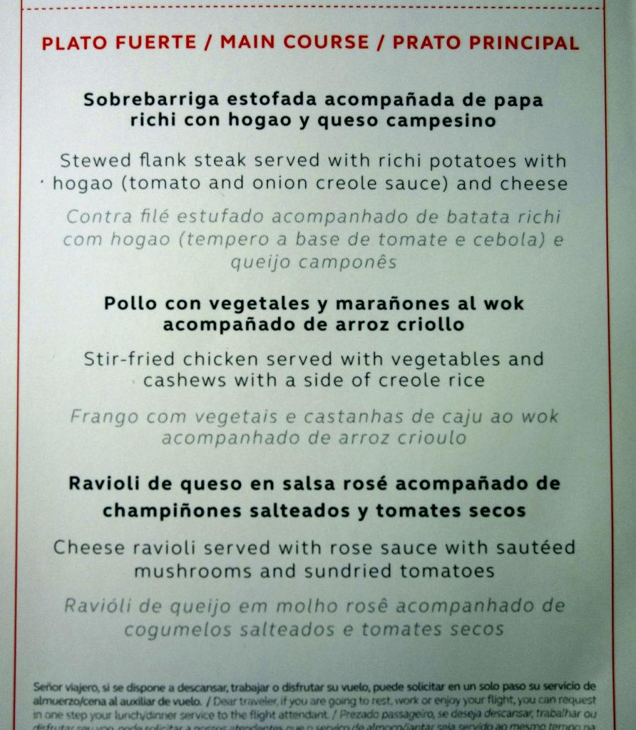 Фотографии не всегда отражают впечатления от блюд. На вид кейтеринг Avianca смотрится неплохо, но на вкус это была одна из самых невнятных трапез в бизнес-классе на моей памяти. Хамон был замерзший, спрессованный и соленый, тортилья – каменной и безвкусной, а курица была уровня забегаловки в фуд-корте. Даже хлебная корзина выглядела грустно; все виды хлеба были помятыми и невкусными, а одна булочка оказалась мокрой.