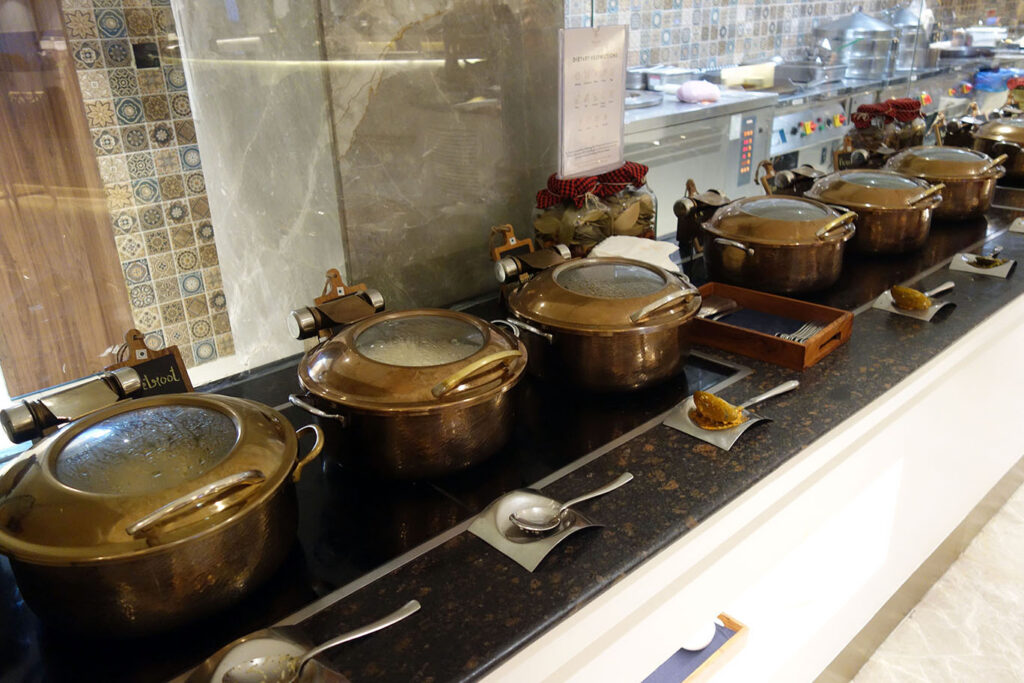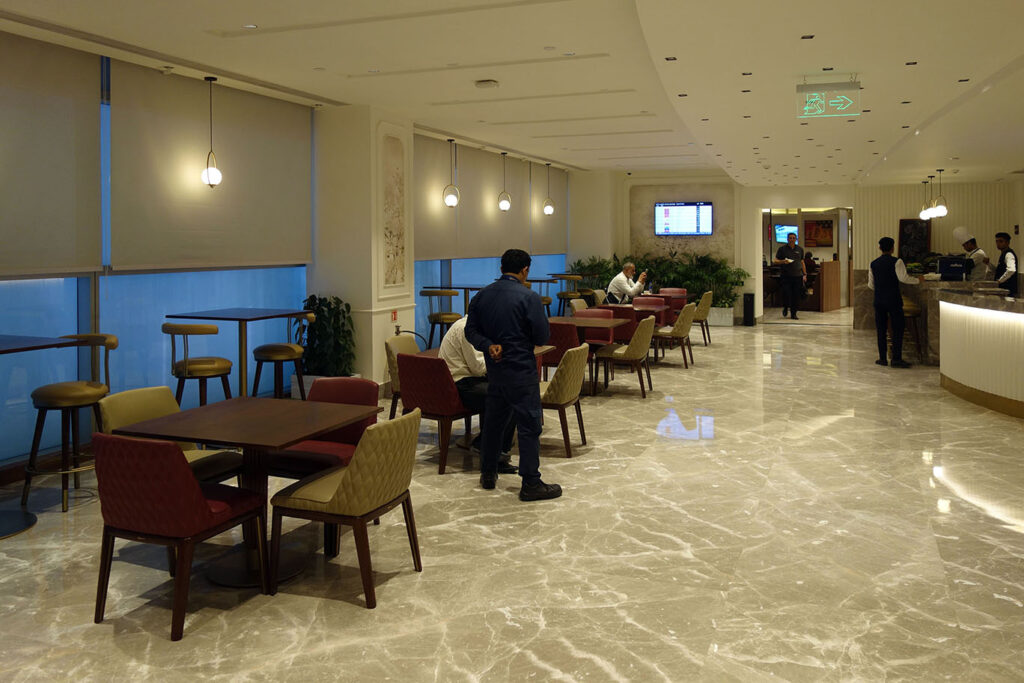 Из-за наплыва посетителей, лаунж выглядел хаотично (хоть свободные места и можно было легко найти в глубине). Мне даже не удалось взглянуть на спальни и на душевые, которые были заняты. И презентация буфета могла быть поаккуратнее. Но теперь, когда премиум-пассажиры Air India имеют собственный лаунж, в Encalm Prive Lounge должно быть посвободнее.