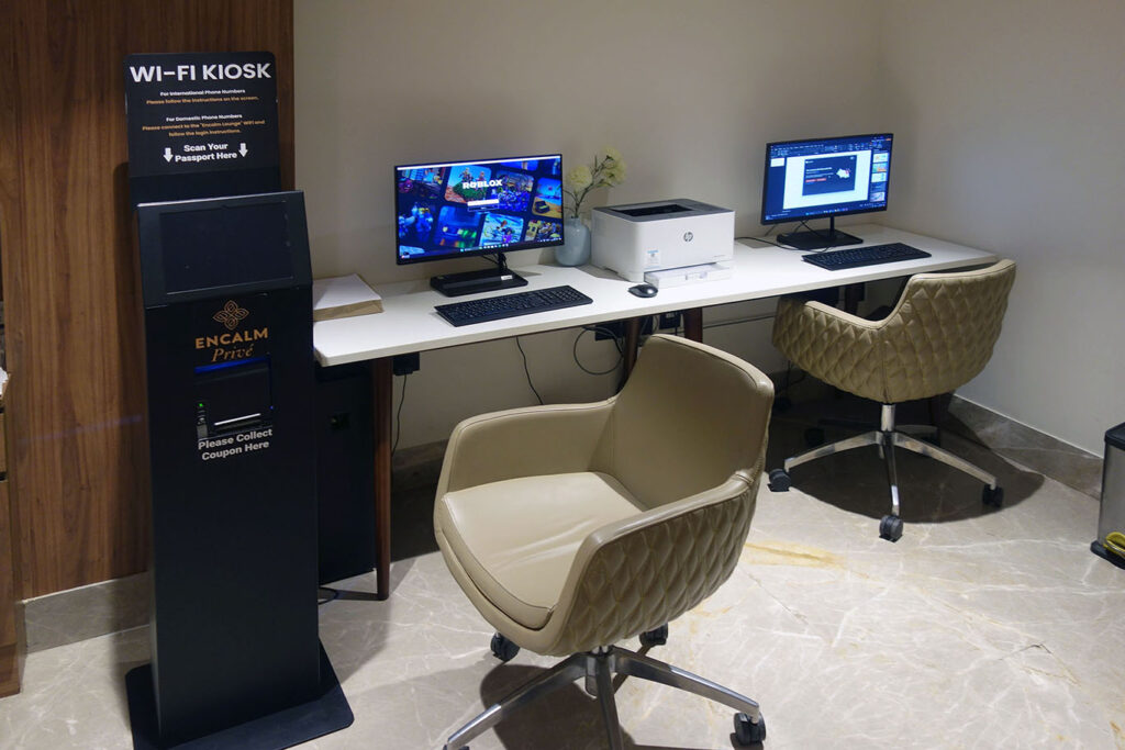 Перед входом в лаунж стоит киоск для получения доступа к интернету: надо либо отсканировать паспорт, либо получить код доступа по местному номеру телефона. Удивительно, как индусы усложняют доступ к интернету. Такая же фигня была раньше в Air India Lounge. Надеюсь, в реновированном флагманском лаунже Air India интернет будет доступен без этих свистоплясок.