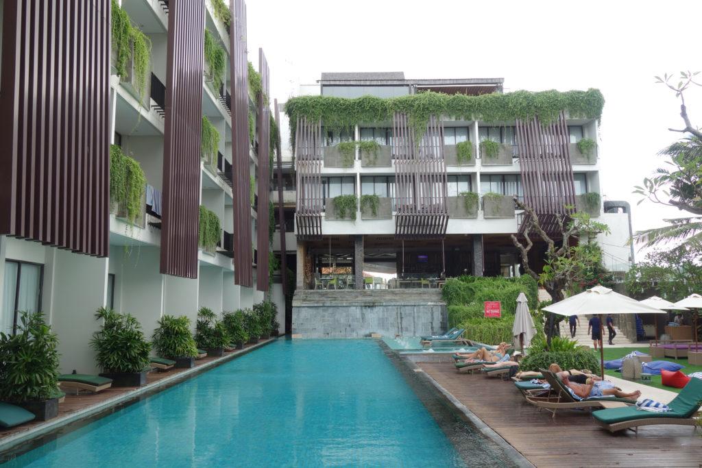В Four Points есть симпатичный бассейн, а рядом с ним – бар Splash. Если другие резорты на Бали, которые я посетил во время этого путешествия, не были заполнены гостями, то в Four Points было полно туристов, и все лежаки у бассейна постоянно были заняты.