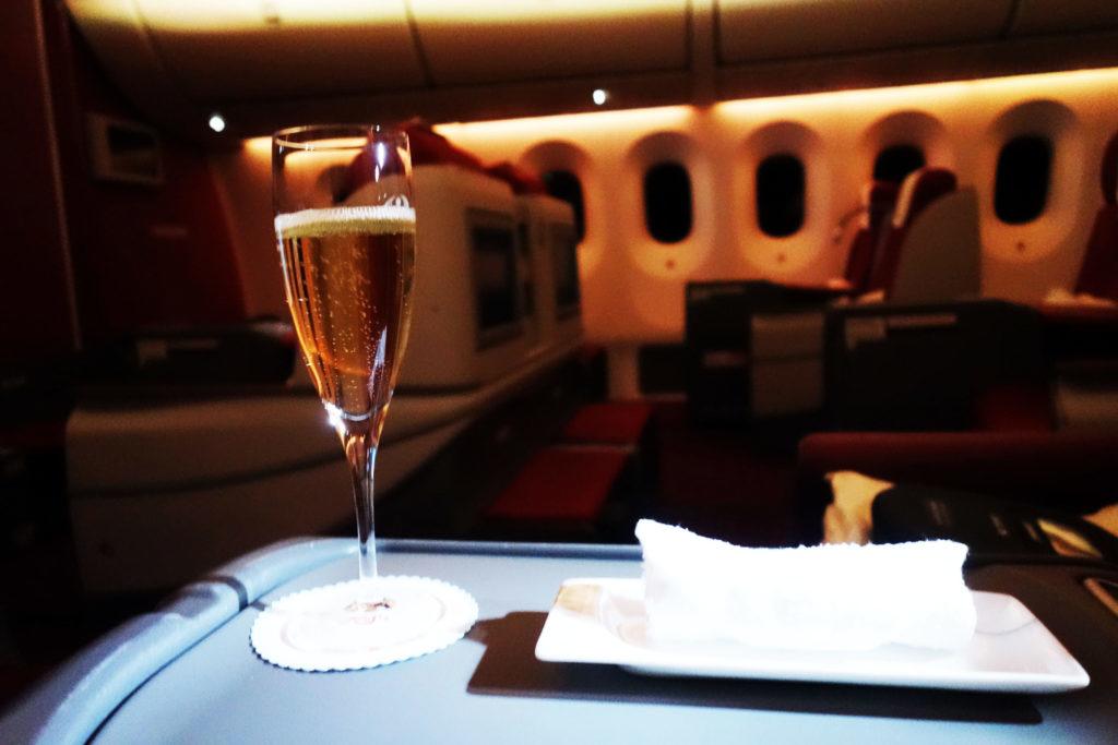 Несмотря на турбулентность, сразу после взлета мне предложили аперитив. Я попросил бокал шампанского. Hainan наливает Leventre-Dedieu… обычно я охарактеризовываю подобные напитки фразой пить можно, но не нужно 😉