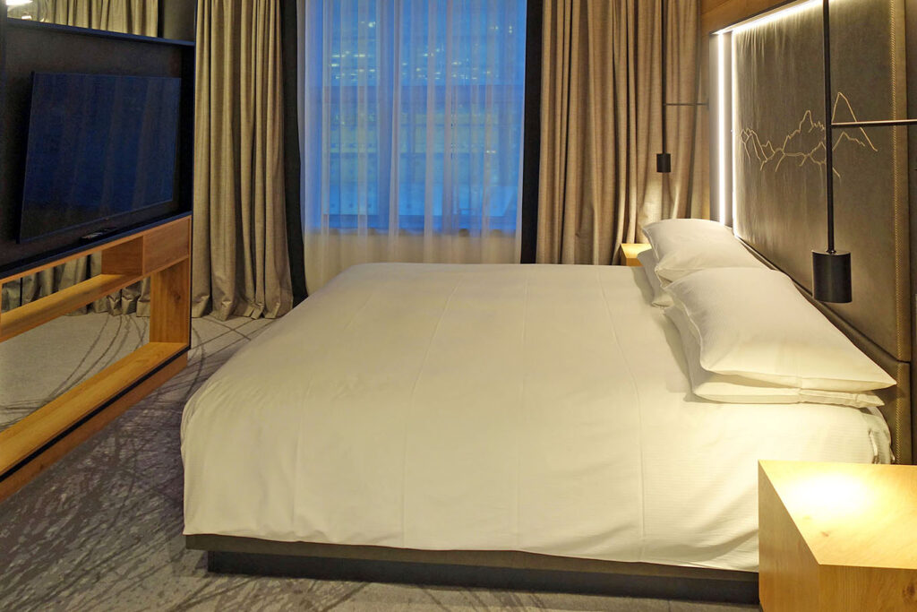 В его пользу говорят шаговая доступность терминалов, современный дизайн, наличие лаунжа и полноценный велнес-комплекс. Если попридираться, то можно пожаловаться на странную категоризацию номеров (и вообще полное отсутствие сьютов с двумя отдельными помещениями) и слабый вечерний корм в лаунже.