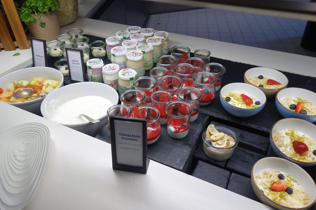 Статусники Diamond могут завтракать как в ресторане Mountain Hub Social Dining на первом этаже, так и в лаунже. Я выбрал ресторан: конечно же, в нём шире жральный ассортимент, хотя и больше народу.