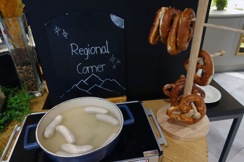 Единственное, что можно выделить в буфете – баварские белые сосиски. С брецелями и сладкой горчицей, ясное дело. Всё остальное – солидная банальщина.
