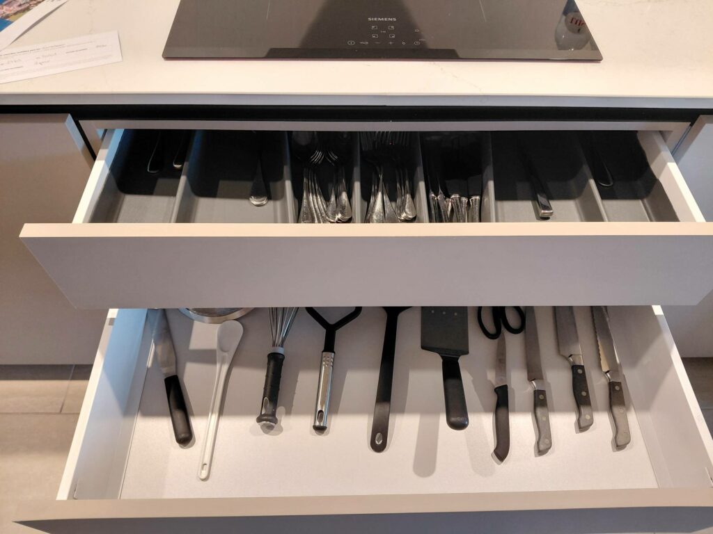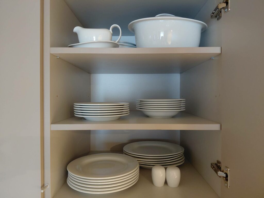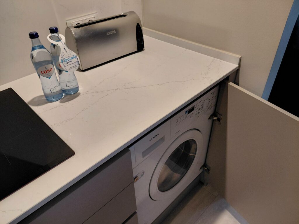Кухня оказалась феноменально укомплектованной: полный набор посуды, столовых приборов и бытовых агрегатов типа стиральной машины, тостера, плиты. Часто бывает, что отели анонсируют кухню, которая на деле включает лишь микроволновку и раковину. Здесь же есть все возможности для приготовления пищи. Благо по соседству есть супермаркет Spar.