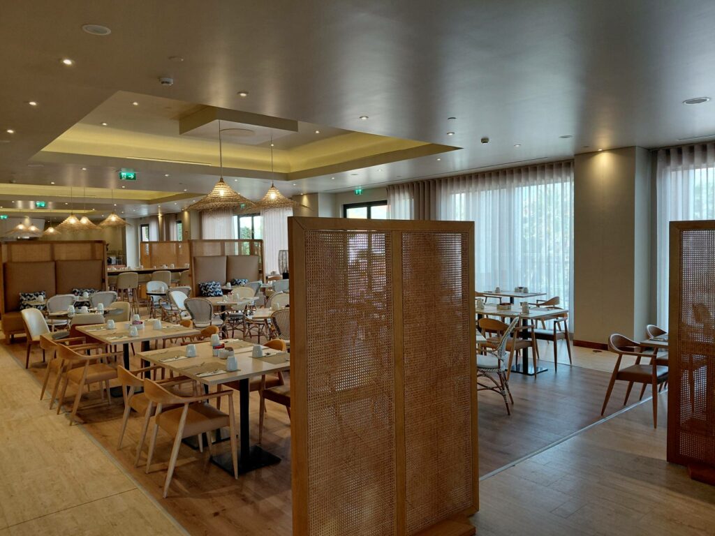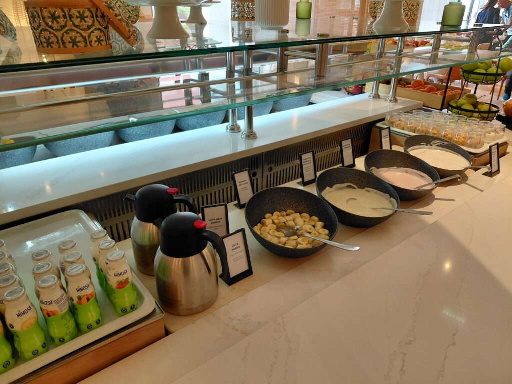 Отель явно экономит на продуктах: все они были низкого качества, среди широкого ассортимента не нашлось ничего вкусного. Йогурты, сыры, колбасы были ужасными. Яичницу жарили в формочке. Даже фильтр-кофе и чайные пакетики были мусорными (справедливости ради, в “секретном” углу ресторана стоит машина Nespresso). Разница особенно заметна по сравнению с W Algarve, в который я переехал из Hilton: там были и качественные продукты, и спешлти-кофе.