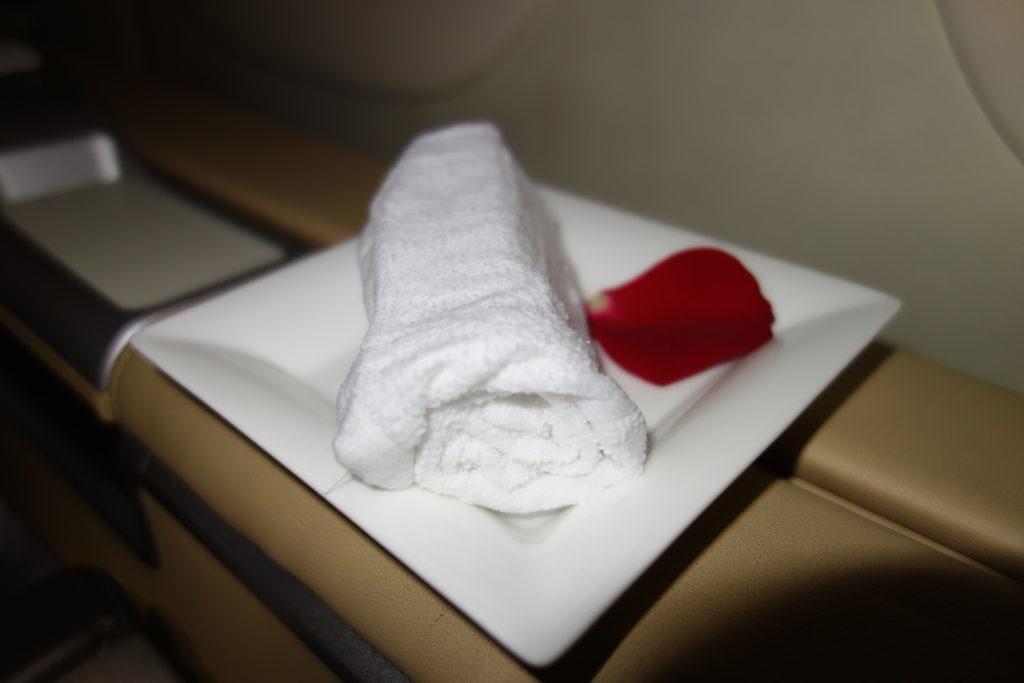 Сервис начался без промедлений. Сначала мне предложили горячее полотенце с гарниром из лепестка розы.