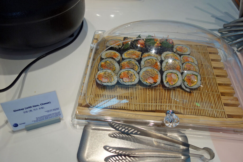 В утренне-дневные часы, буфет включал четыре бадьи с супами, несколько готовых салатов и салатных ингредиентов, четыре горячих блюда плюс корейский кимбап.