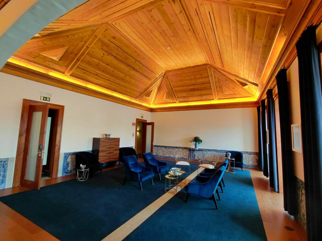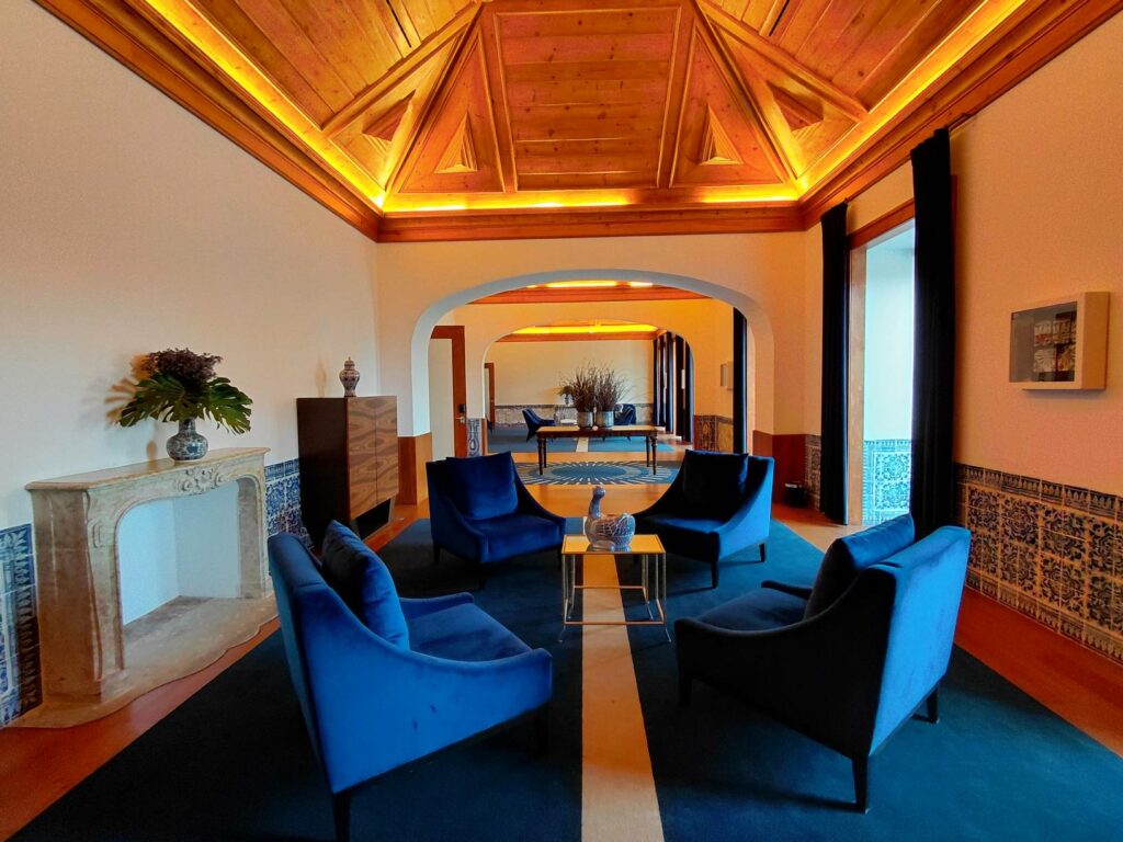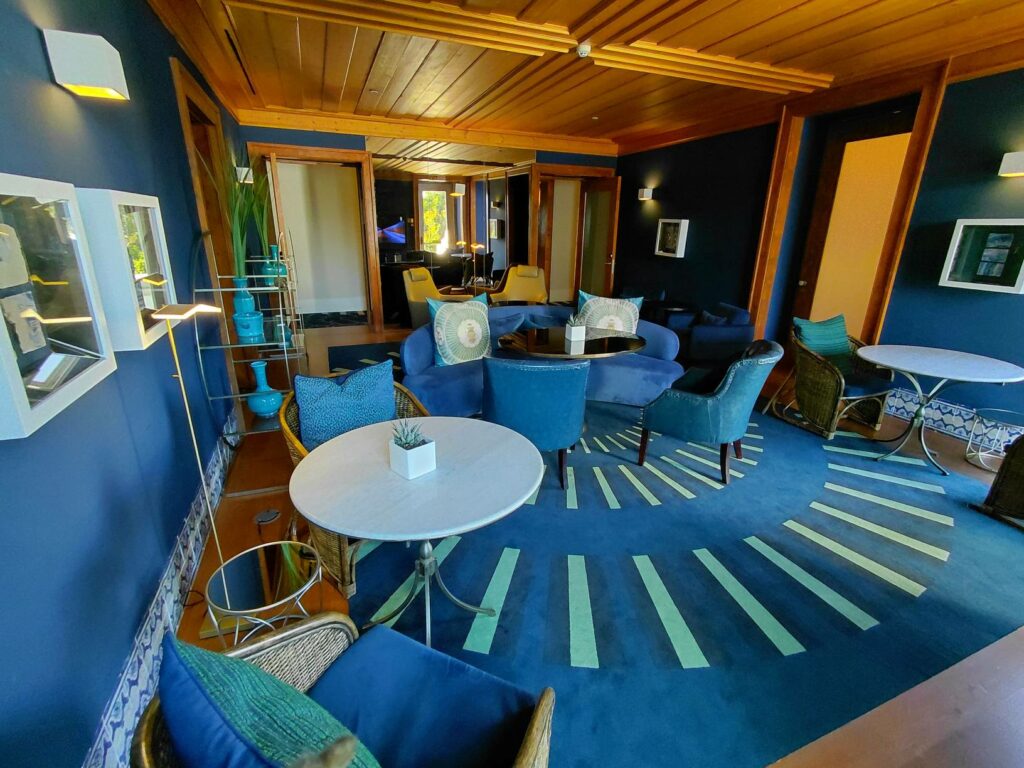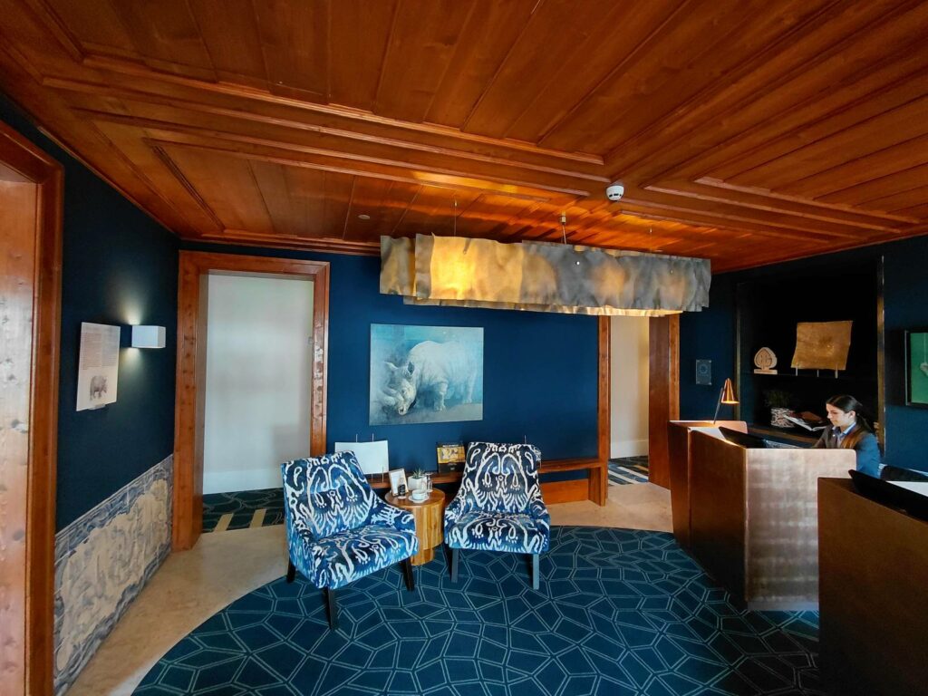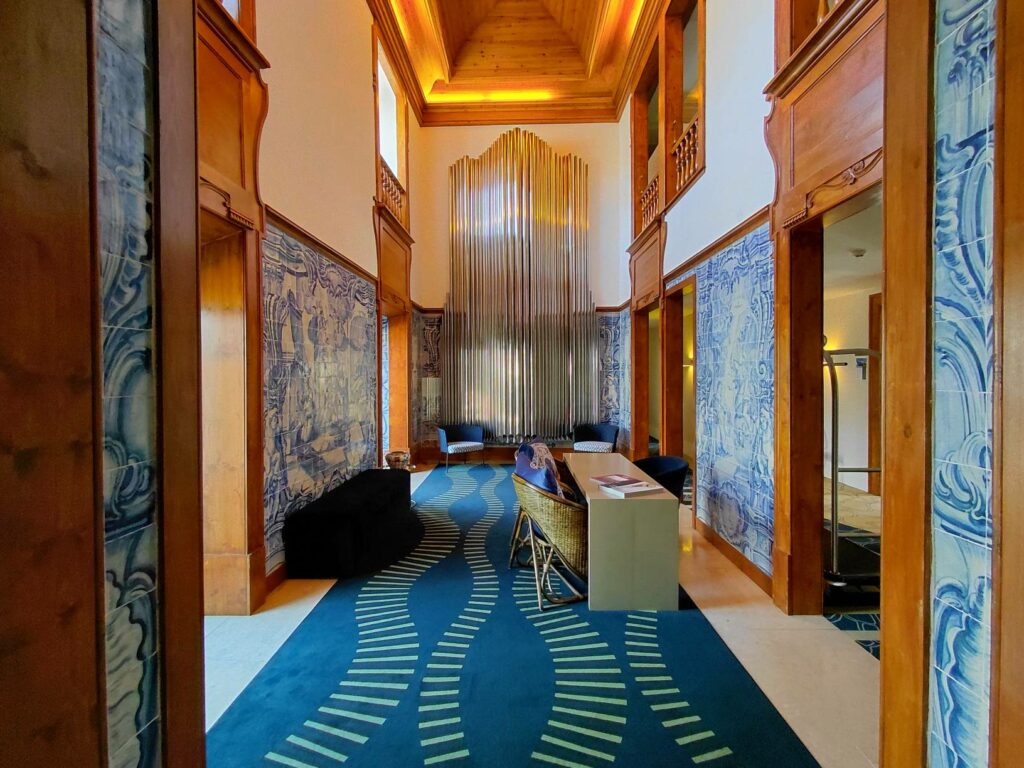 Общие помещения на первом этаже выглядят впечатляюще: интересное сочетание синевы в обивке мебели, португальских плитках azulejo, коврах и обоях с деревянными панелями на стенах и потолках. Помимо самого лобби со стойками ресепшна, в таком ключе выполнены несколько комнат со столами и креслами, бар и зал с декоративным органом.