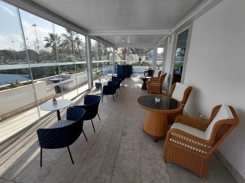 Вход в отель расположен не со стороны реки Тахо, а с обратной части квартала: сначала надо пройти сквозь “парник” с археологическими руинами, а затем через дворик с несколькими столиками и зонтиками для релакса в солнечные дни.