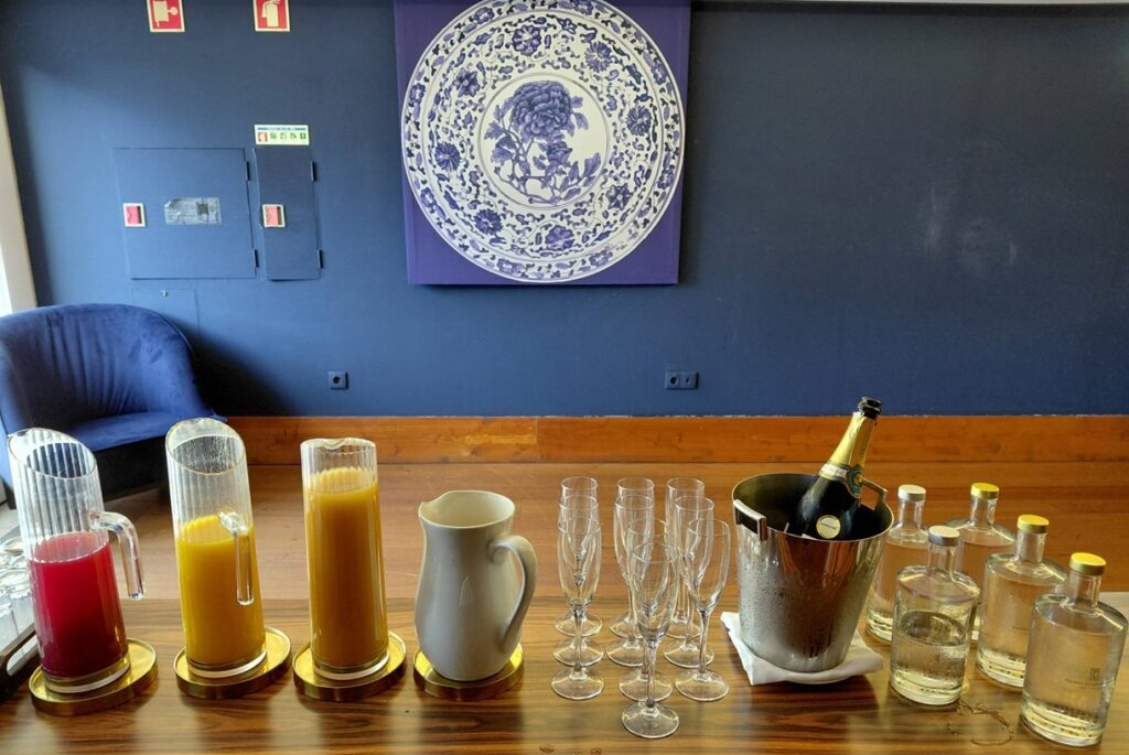 В лобби можно полакомиться комплиментарным зеленым чаем, водой с газом и без, а также [не комплиментарно] заценить знаменитый местный ликёр ginjinha.