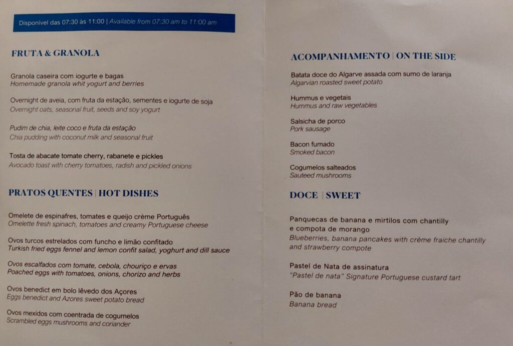 По меню (которое пришлось ждать около 20 минут, с неоднократными напоминаниями разным официантам) можно было заказать блюда из яиц, блинчики, овсянку, авокадо-тост.