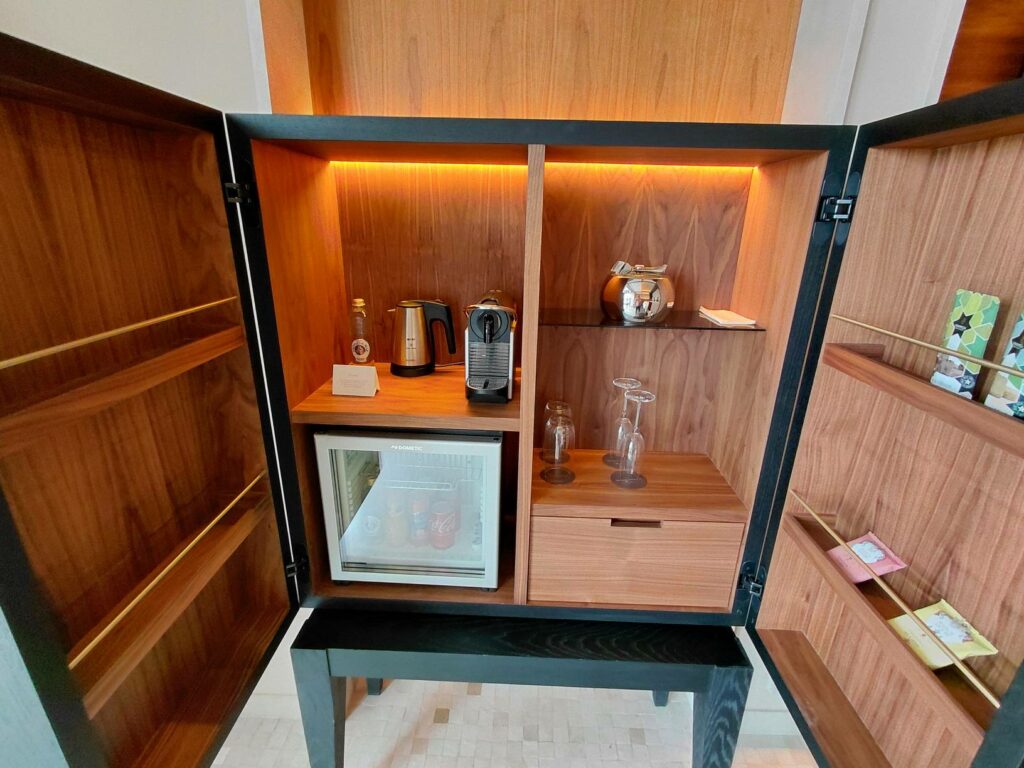 Минибар был комплиментарным: газировка, вода, снэки. Не обошлось без электрочайника и капсульной кофе-машины.