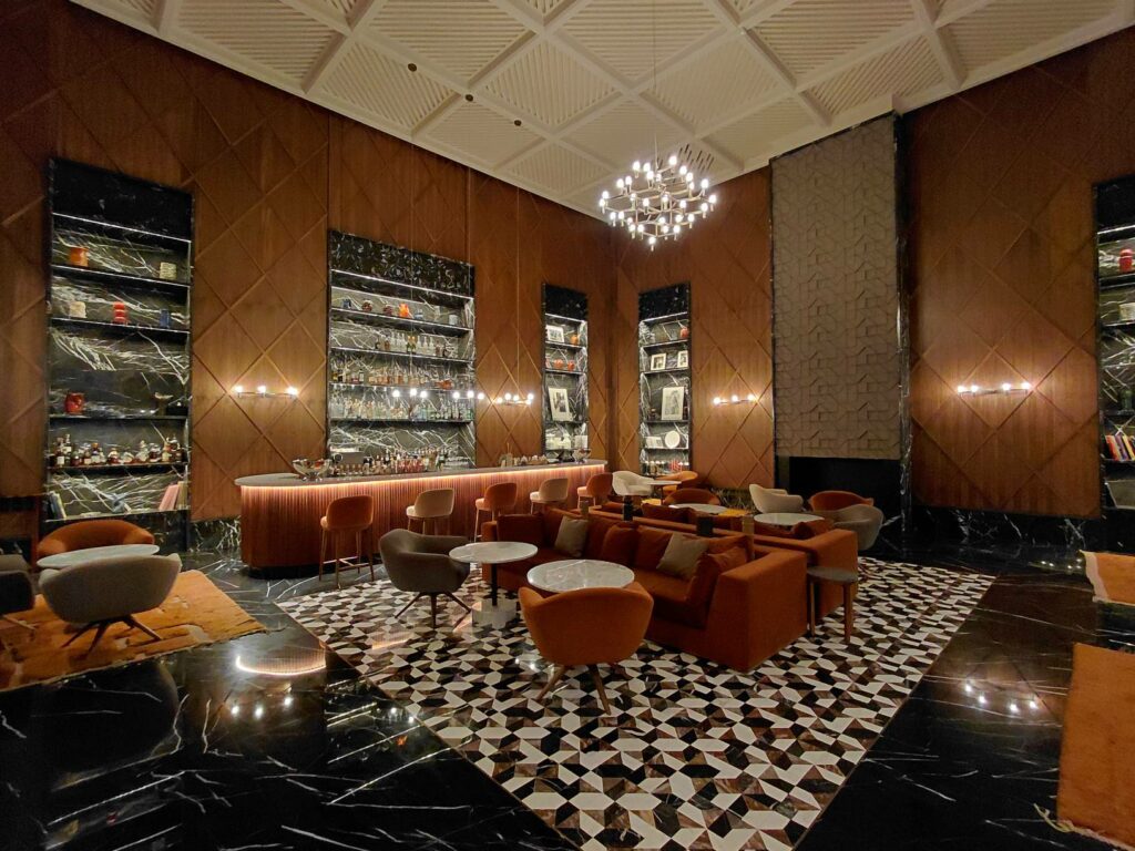 Общие помещения включают два квадратных зала: лобби с диванами, стойками регистрации и столом консьержа, плюс бар под названием Living Room.