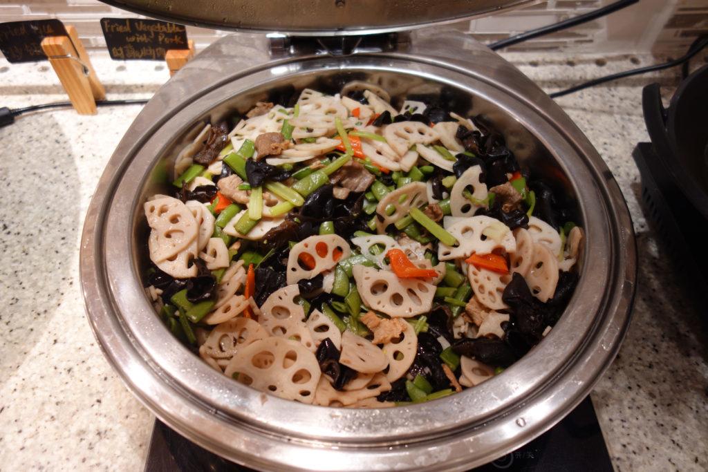Ассортимент блюд, которые появились в буфете вечером, был на заглядение: колбасно-сырные нарезки, кальмары во фритюре, суши, салаты. И это я не упоминаю китайские блюда – просто потому, что не знаю их названий 😉 Если брать отели Renaissance, пекинский лаунж – один из лучших, что мне доводилось видеть. Презентация была на высоте, и на протяжении вечера сотрудники следили за чистотой и пополняли недостающие блюда.