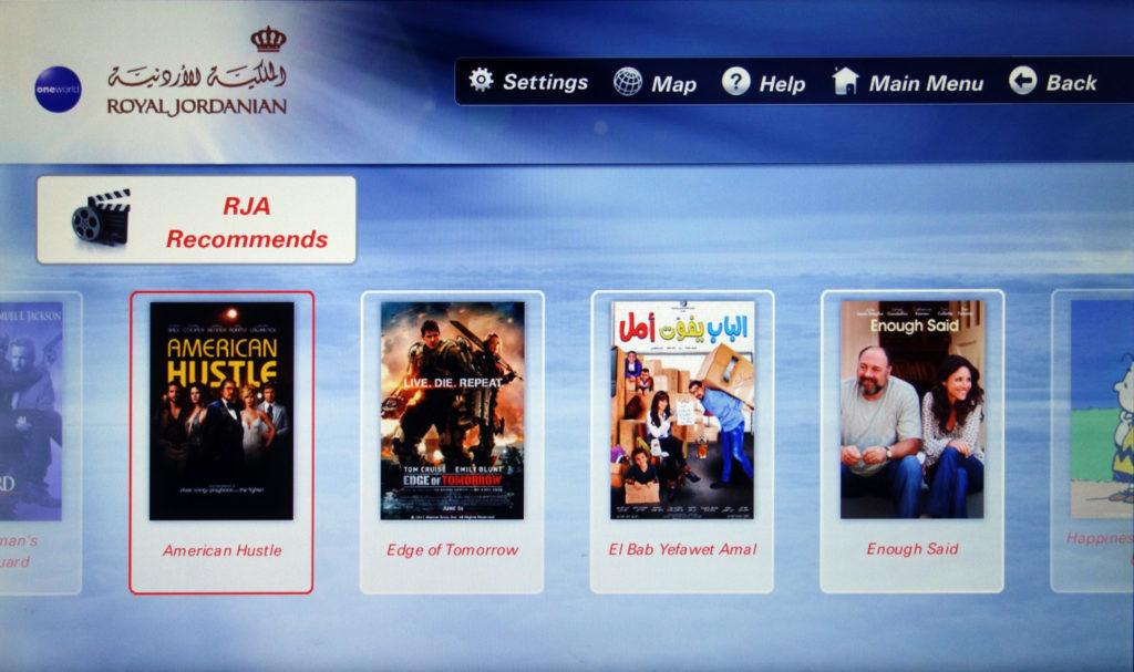 Пока мы набирали высоту, я поигрался с системой развлечений. Управление осуществлялось и сенсорно, и при помощи пульта, и было резвым.