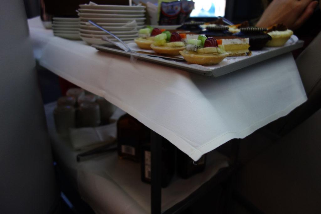 Внизу стенки предусмотрен столик, но во время полета там не было ни напитков, ни закусок.