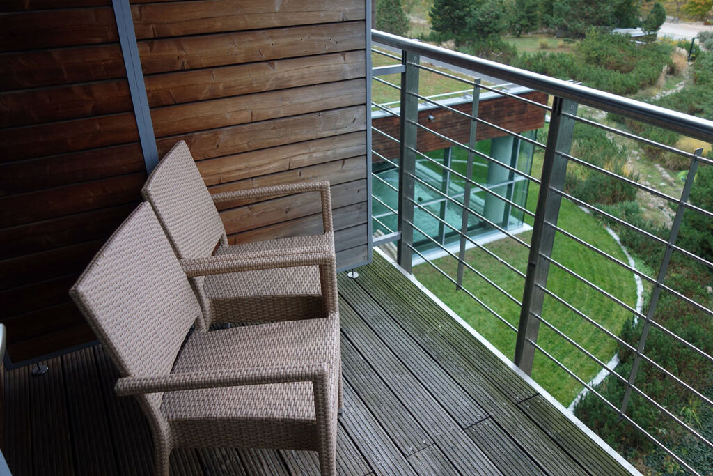 К номеру примыкал балкон с двумя стульями и видом на море. Насколько я понимаю, балкон прилагается к каждому номеру в отеле.