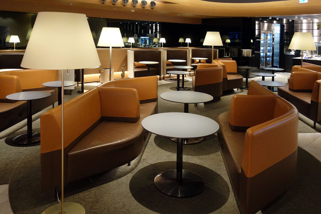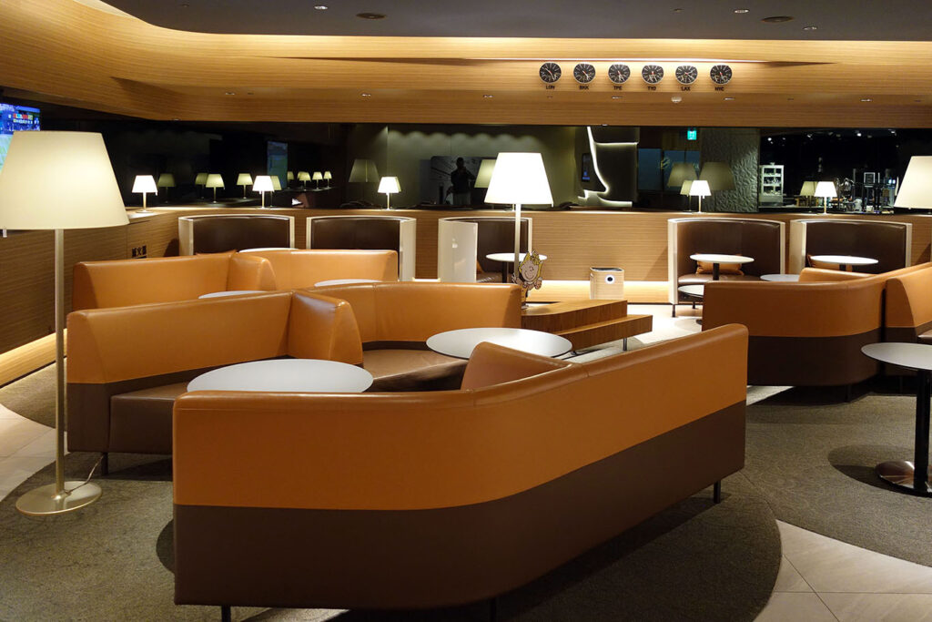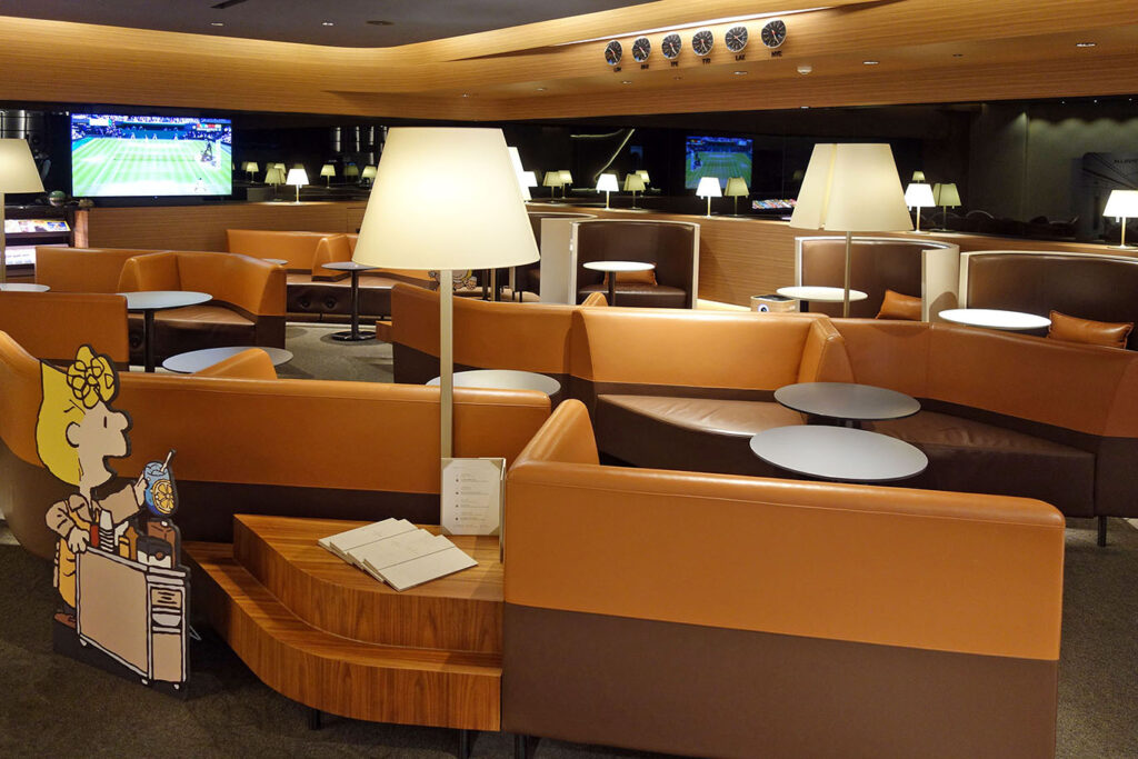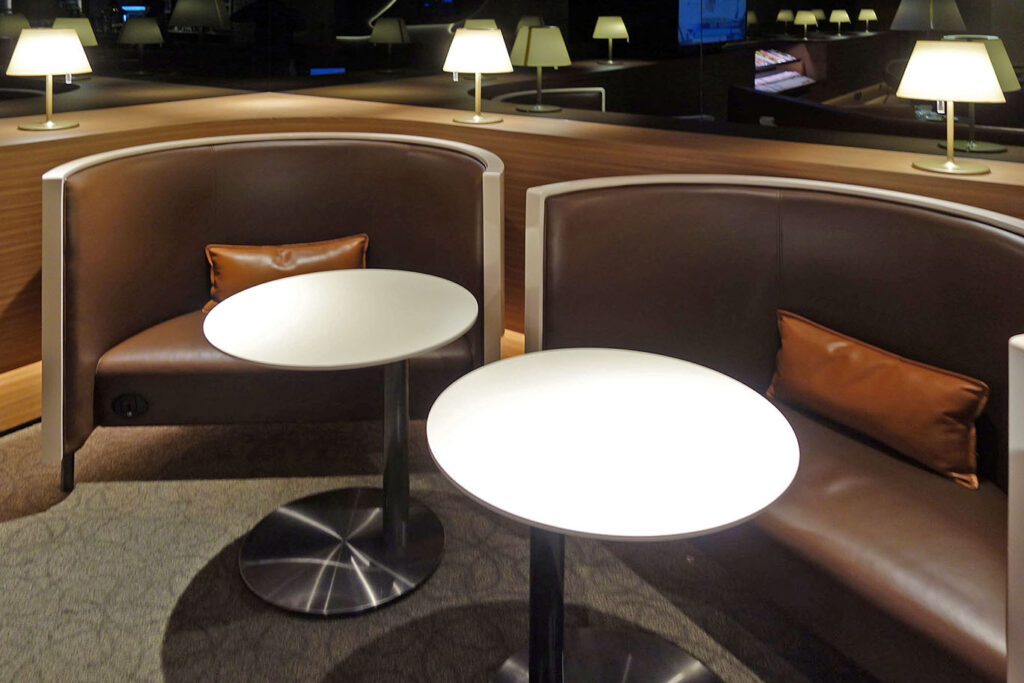 Внешне, лаунж выглядит мило, но чувствуется пещерная эстетика: в нём нет окон (как и в других залах, расположенных в том же кластере в Т1).