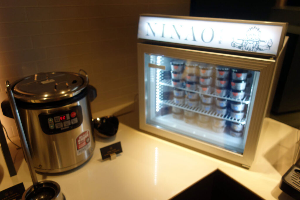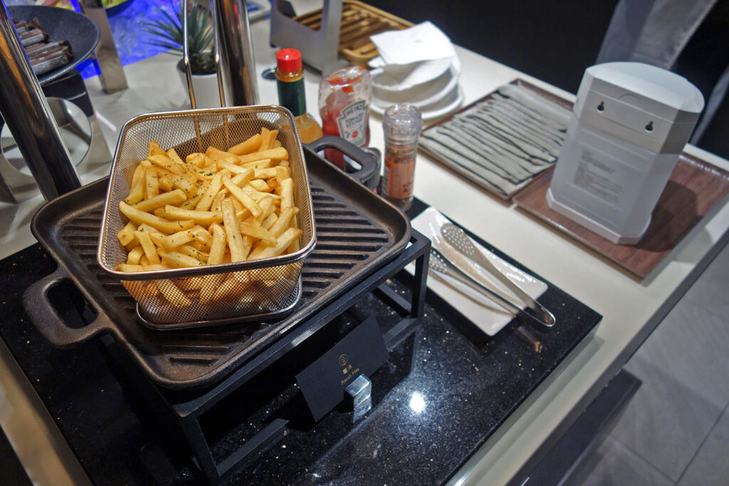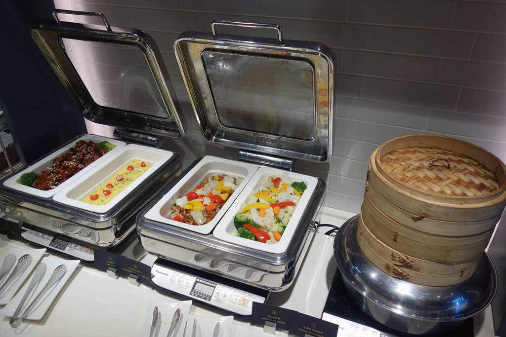 Думаю, что гастрономический аспект можно считать зачётным – по меркам такого маленького лаунжа. Как почти всегда бывает в Китае, не ждите “нормальной” пищи: ассортимент в лаунже сильно перекошен в сторону азиатщины.
