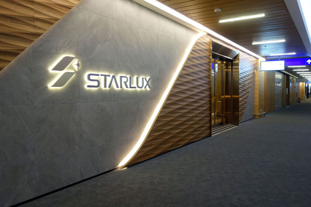 STARLUX летает из обоих терминалов тайпейского хаба. Первым лаунжем, который открыла STARLUX, был маленький лаунж в Т1. Из Т1 выполняются рейсы в Японию, Гонконг и Малайзию.