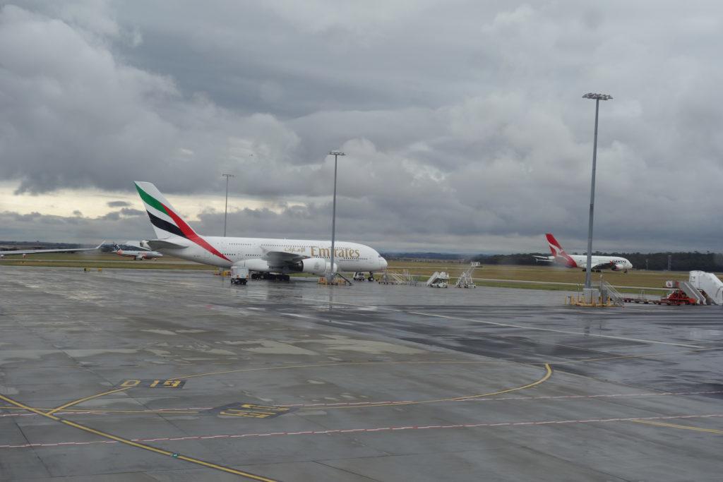 После десятиминутного руления, во время которого я вдоволь мог насмотреться на А380 – как Emirates, так и Qantas – в 15:52 мы были в воздухе.