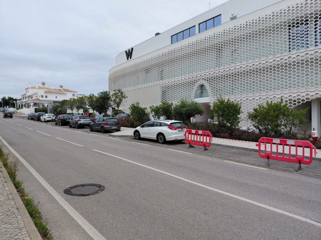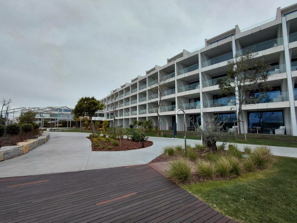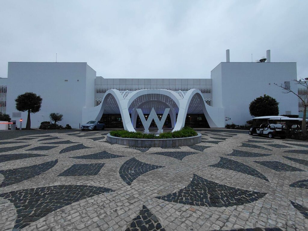 Со стороны дороги, W выглядит как торговый склад и выбивается из архитектурной стилистики региона. W Algarve имеет два въезда: как для отеля, так и для резиденций, которые считаются отдельным объектом (если кто собирается дрочить per-stay promotions, то будет удобно переходить пешком между отелем и резиденциями).