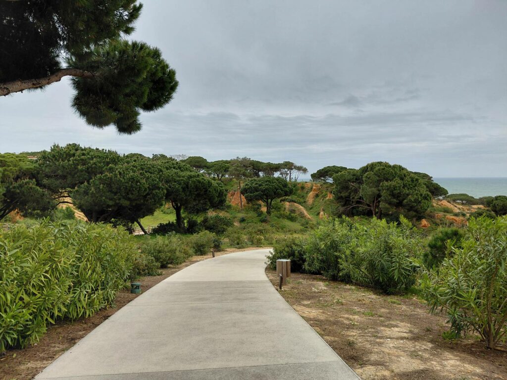 W Algarve находится возле городка Албуфейра. Всё южное побережье Португалии застроено кондоминиумами, так что не рассчитывайте на изолированный пляжный резорт. Тем более, что территория W Algarve непосредственно не примыкает к пляжу. Хотя дорожка с задней стороны W ведёт вот к таким пейзажам.