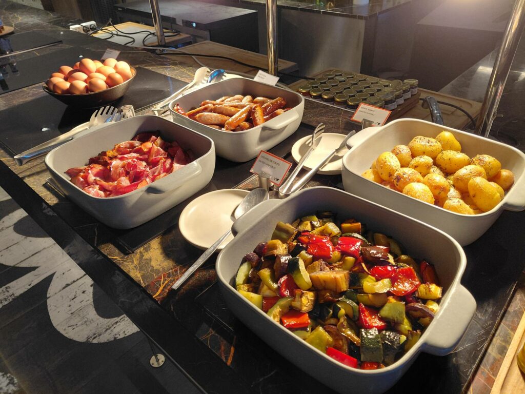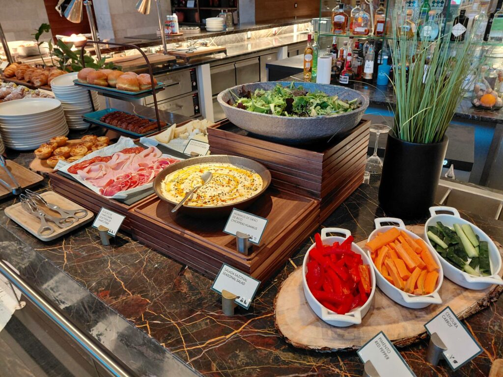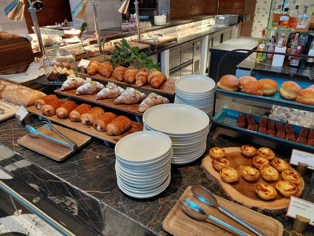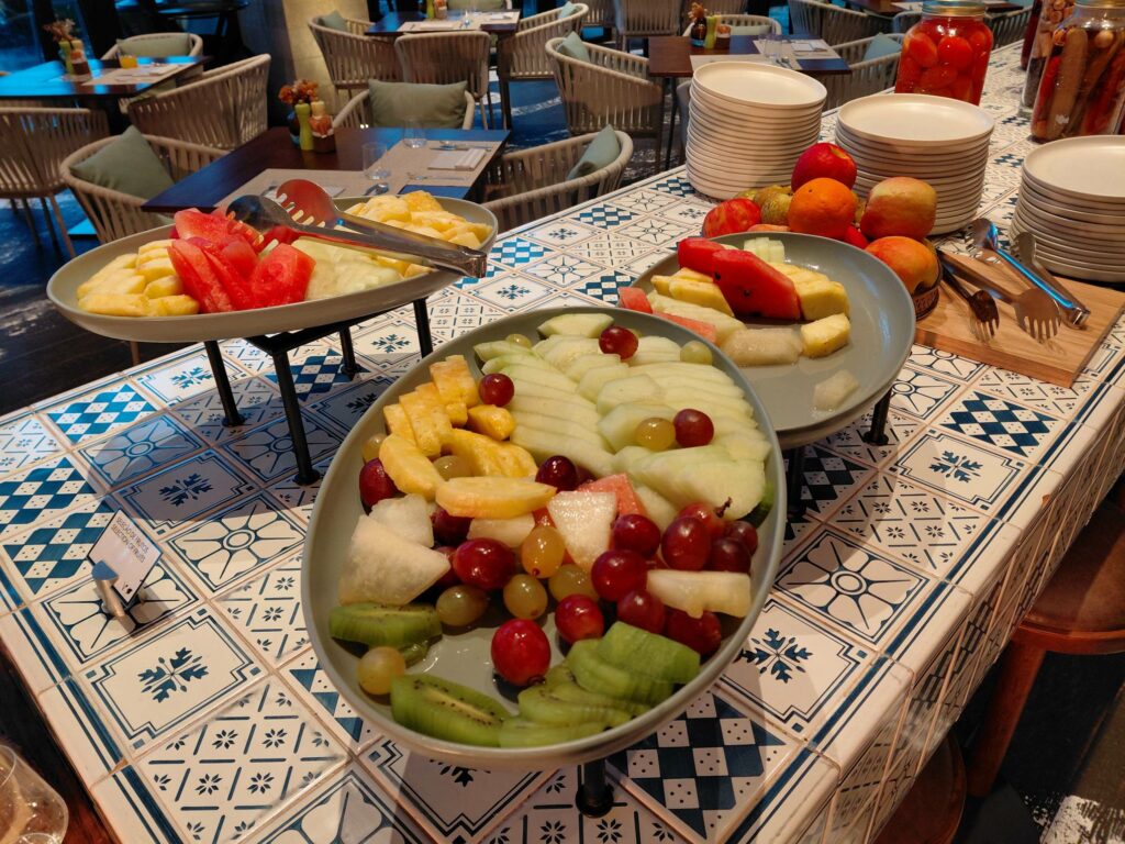 В отличие от Hilton Vilamoura, упор в буфете сделан на качество продуктов и симпатичную презентацию: спелые фрукты, качественная выпечка, хуммус.