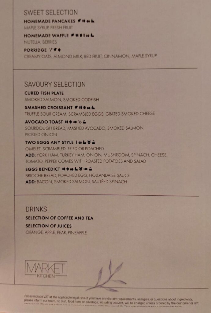 Как участник Titanium, в качестве варианта приветственного подарка я мог выбрать комплиментарный завтрак. Он сервируется в ресторане Market Kitchen с 7 до 11 утра.