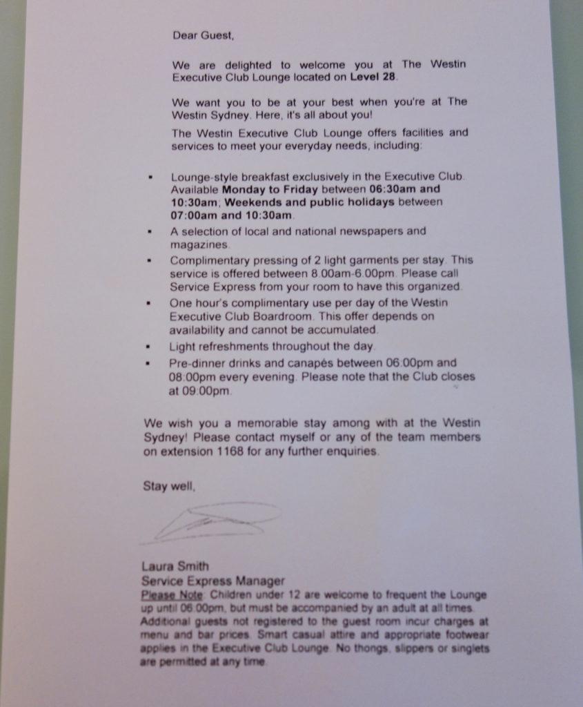 Я получил приветственное письмо, в котором перечислялись мои бенефиты как участника SPG Platinum.