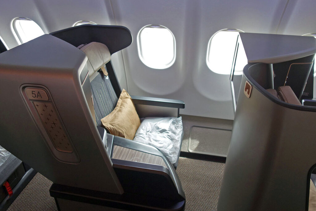 На Airbus A321neo установлены кресла Collins Aerospace Diamond. Опять же, Airbus A321neo летают исключительно внутри Азии, так что это очень солидный продукт (конечно, если бы речь шла о дальних ночных рейсах, вердикт был бы иным). Если не упускаю чего-то, STARLUX — одна из двух авиакомпаний в мире, которые установили дивайдер между такими креслами (другая — Gulf Air).