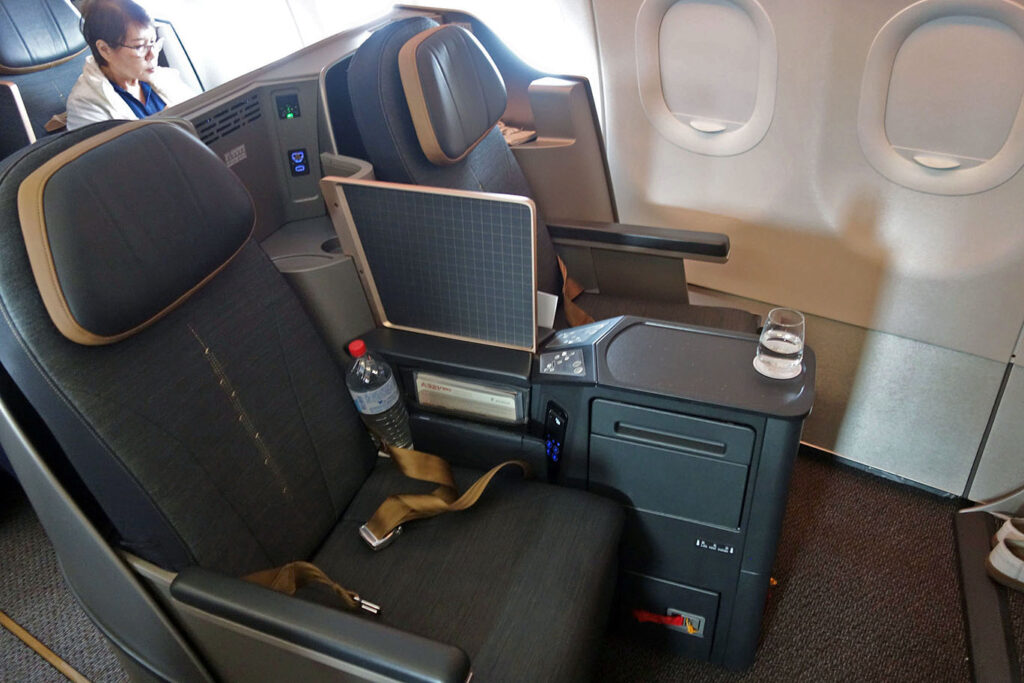 На Airbus A330-900neo установлены кресла Safran Skylounge Core. Тайванцы стали первой авиакомпанией, заказавшей такой продукт; но на деле, в отрасли есть и другие похожие продукты, отличающиеся лишь мелкими деталями (например, бизнес-класс SAS). Airbus A330-900neo используются исключительно для рейсов внутри Азии. Стоит ли говорить, что это шедевральное кресло для рейсов длительностью в пару часов…