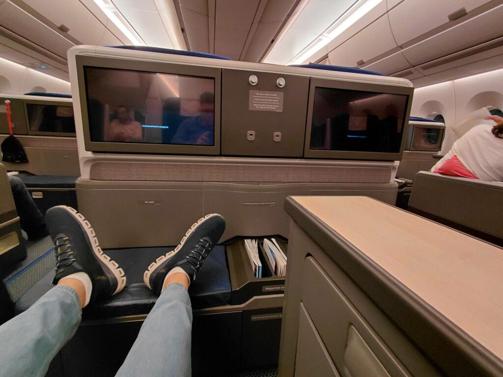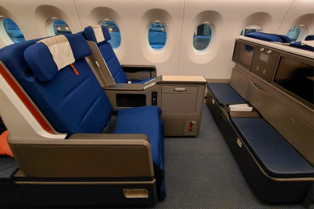 Как бы то ни было, со временем полемика останется в прошлом. Авиакомпании, использующие данный продукт, либо заменят его на новый (как и Edelweiss), либо выведут старые самолёты из эксплуатации. Ну а на данный момент, либо выбирайте его при путешествии с компаньоном, либо надейтесь на удачу получить полупустой самолёт и оказаться без соседа. Мне повезло: бизнес-класс на рождественском рейсе из Картахены в Цюрих был заполнен меньше чем наполовину. Я смог разложить свои вещи на соседнем сиденье и хорошо выспаться. Предусмотрительно выбрав место в центральном блоке кресел, чтобы гарантированно иметь доступ к проходу.