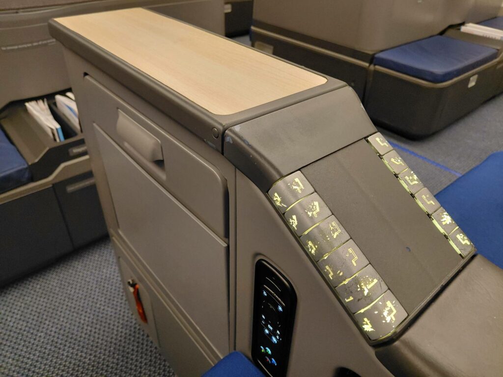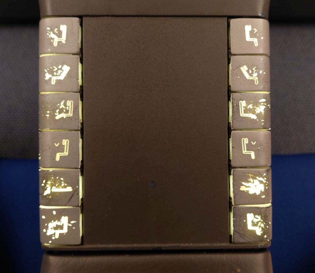 • Кнопки управления креслом были в ужасном состоянии. Собственно говоря, они выглядели потрёпанно уже во времена LATAM (можете почитать мой обзор от 2018 года), но сейчас – просто позорище.