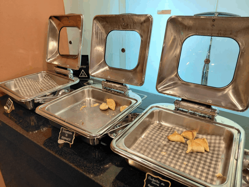 Пусть это не имеет прямого отношения к обзору авиакомпании, Edelweiss стоило бы проявить интерес к тому, в какие лаунжи имеют доступ её премиум-пассажиры. Вот как выглядела гастрономия в лаунже Картахены.